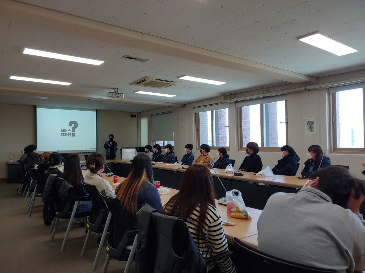 신설된 서비스디자인전공 학생 전원이 처음 얼굴을 마주하고 앉아 특강도 듣고 서로 간의 신청한 수업들도 공유하는 즐거운 시간이었습니다.