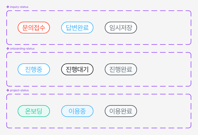 정해진 규칙 내에서 자유롭게 조립이 가능한 형태로 디자인하는 것이 수정이나 새로운 디자인을 추가하는 데 무리가 없었습니다. 특히 제가 작업한 경우에도 복잡하고 많은 라벨링이 필요한 서비스여서 라벨을 조합할 수 있는 최소한의 규칙을 정해두고 다양한 조합을 만들어 나가는 방식이 훨씬 효과적이었습니다. 또한, 프로젝트 성격에 따라 일회성이거나 완전 커스텀 디자인이 필요한 경우도 있습니다. 그럼 그 때마다 디자인 시스템을 복사하여 작업을 할 건가요? 아니면 완전히 새로운 디자인 시스템을 다시 새로 구축할 건가요?
